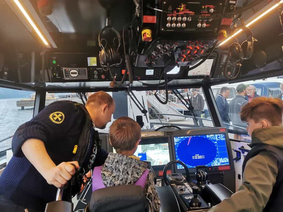 Det var også anledning til å gå om bord å sjå den ca 40 fot store båten innvending. Noko som var stor stas både for liten og stor.